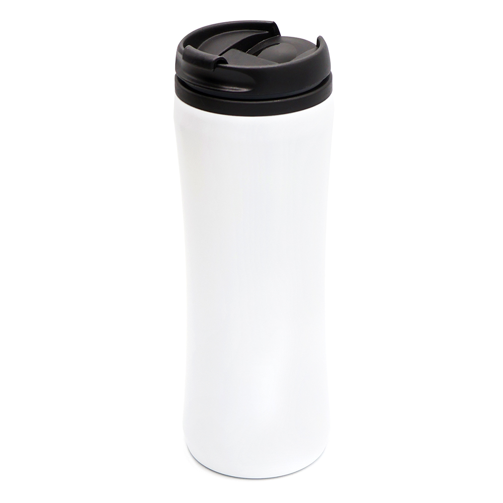 Термокружка изготовлена из нержавеющей стали с матовым покрытием. Внутренняя колба сделана из пластика. Вакуумная конструкция. Откидной клапан позволяет пить, не снимая крышку, что помогает дольше сохранить начальную температуру напитка. Объем термокружки – 500 мл.